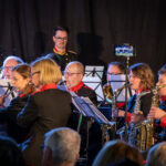 Das Highlight des Abends stellten jedoch die nächsten beiden Stücke dar, da bei diesen 14 ehemalige aktive Mitglieder der Stadtkapelle Grieskirchen mitwirkten. Wir durften zwei Flötistinnen, vier Klarinettistinnen, eine Tenoristin und einen Tenoristen, einen Hornisten, zwei Trompeter/Flügelhornisten, einen Posaunisten sowie einen Schlagzeuger erneut in unseren Reihen begrüßen. Der Erzherzog Karl Marsch wurde zudem von unserem ehemaligen Kapellmeister und nunmehrigen Ehrenkapellmeister Mag. Karl Kasbauer dirigiert. „Ein Leben lang“ von den Fäaschtbänklern mit einer Gesangseinlage rundete das gemeinsame Musizieren mit den Ehemaligen emotional ab, denn ein Leben lang wollen wir miteinander und mit der Stadtkapelle Grieskirchen verbunden sein. Beim offiziellen letzten Stück sangen Julia Bonelli und Ines Ganglmayr drei Hits von Rainhard Fendrich. Als Zugabe schloss sich der Kreis mit „Circle of Life“ aus König der Löwen, und anschließend ließen wir den Konzertabend mit dem Publikum gemütlich ausklingen.